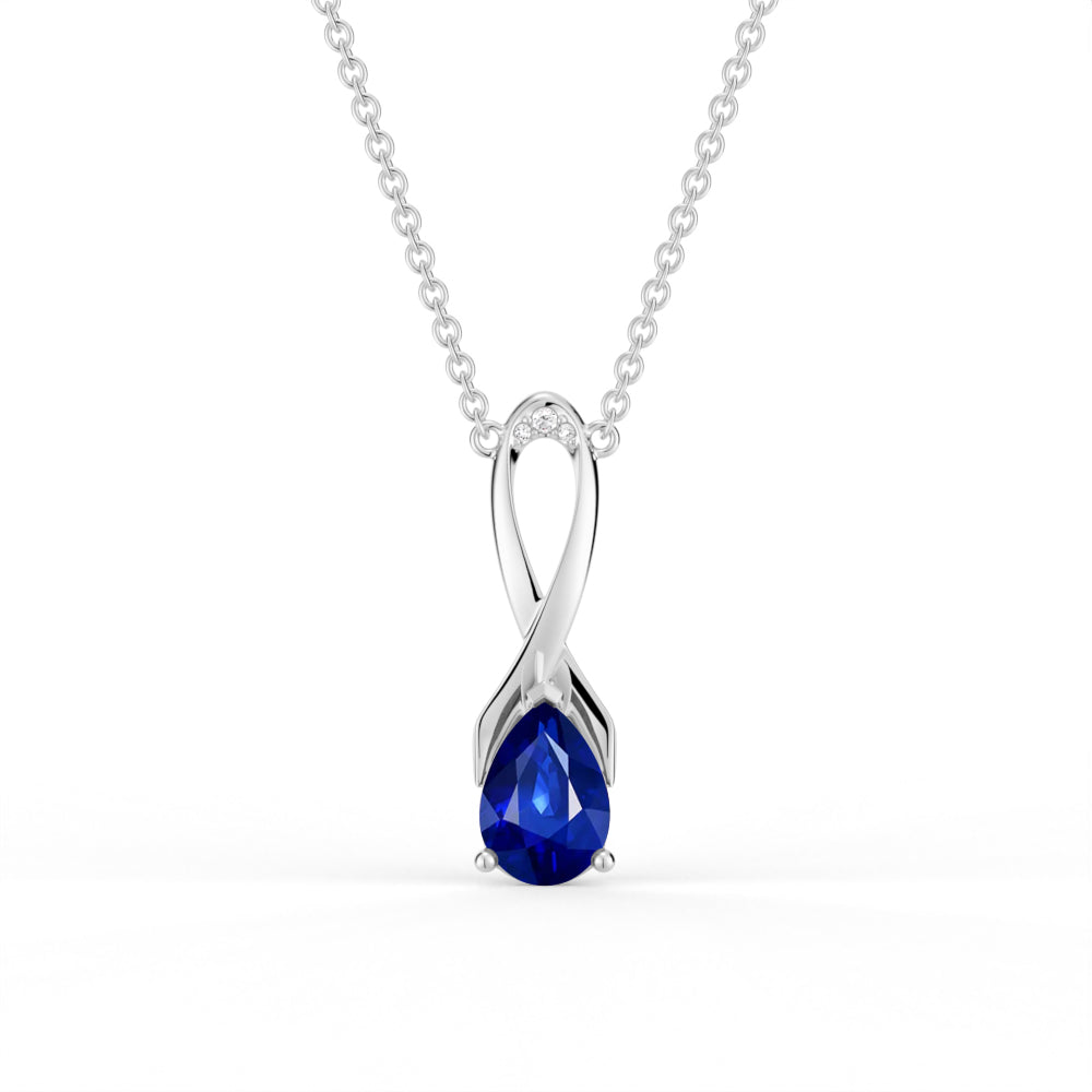 "Blue For Pink" Sapphire Necklace And Earrings Set With Ribbon