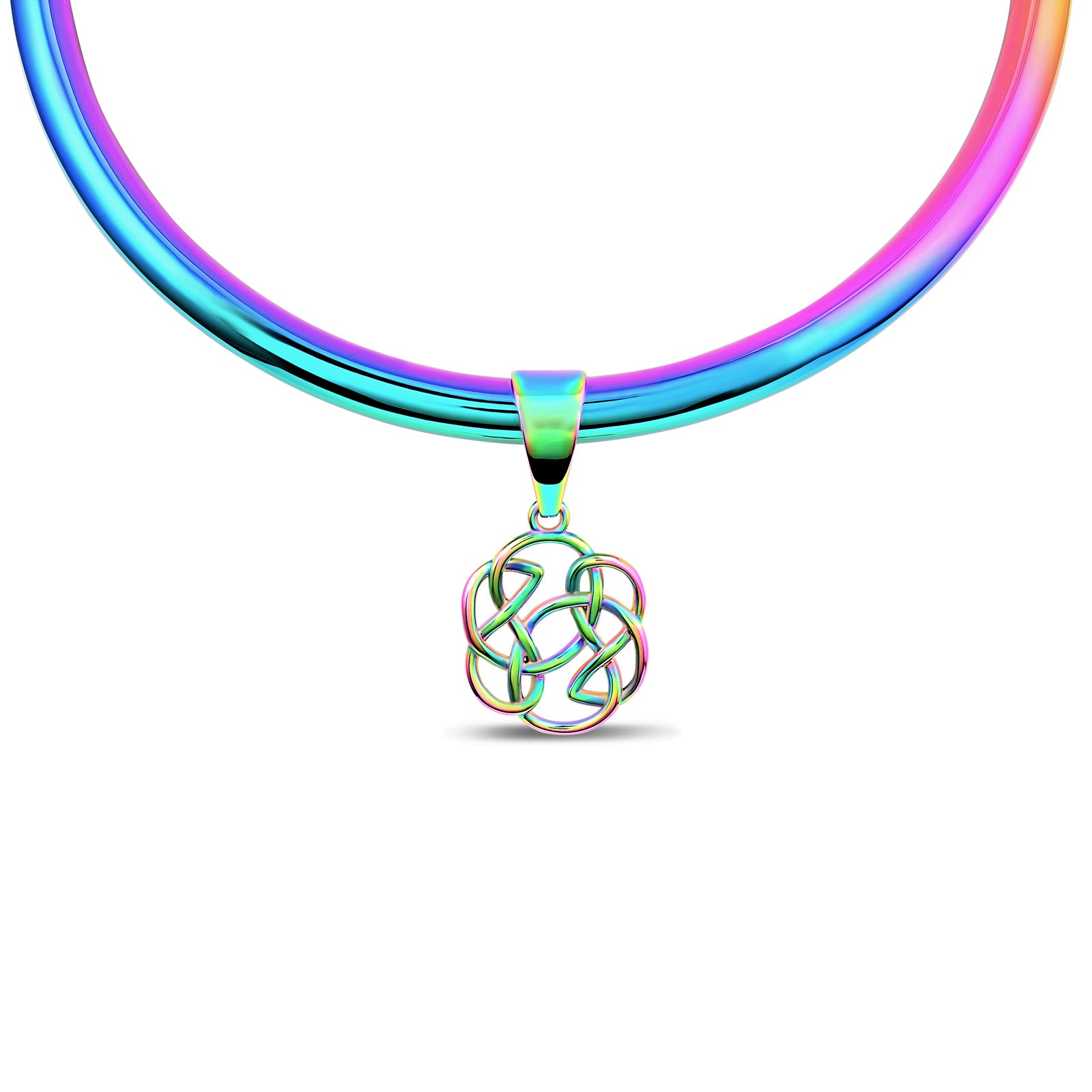 This high-quality stainless steel pendant features a Celtic knot (Shield of Destiny) design, with a continuous pattern. The special clasp is designed to fit any of our collars, cuffs, and anklets.
