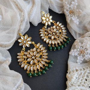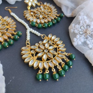 ''DIYA'' PEARL DROP MANGTIKA EARRINGS SET - GREEN