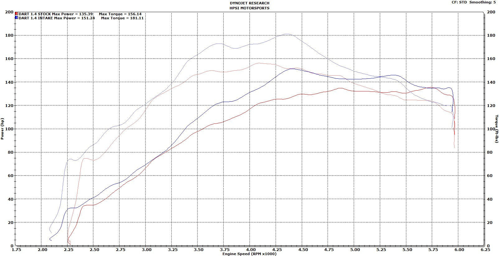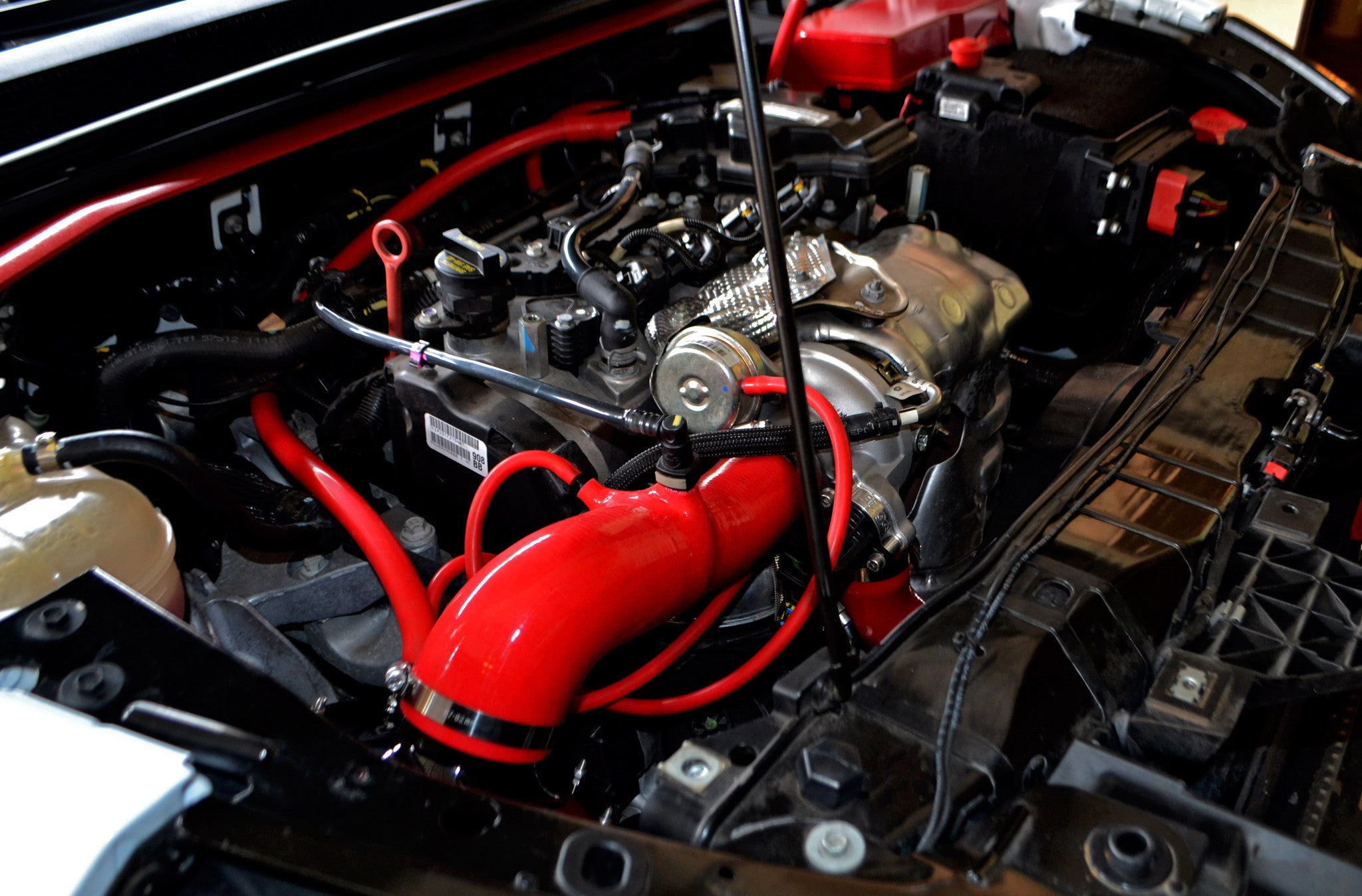 Designed and manufactured with 5 layers of high strength, reinforced 100% silicone. Our silicone is designed to withstand 600F and up to 100psi of pressure without collapsing under vacuum. This intake system includes a K&N Apollo Filter and stainless steel guarded clamps. Provides one of the straightest routes to the Dart 1.4L's turbo than any other intake on the market. Gains of up to 16whp and 25wtq!