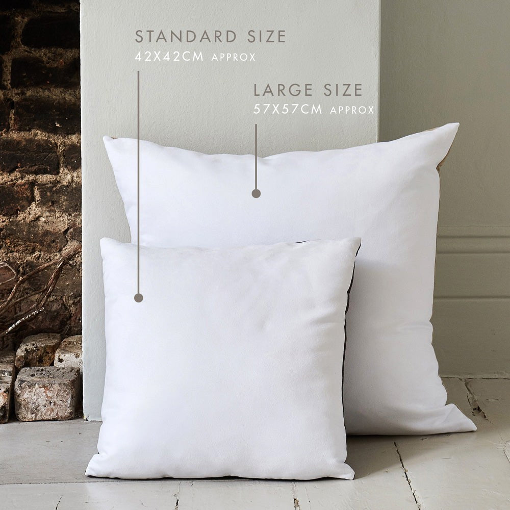 Our luxury cushions are designed and sewn with love, especially for you. Each comes complete with a concealed zip and a choice of filled cushion pad - fibre or duck feather. Alternatively you can choose just to buy the cover if you already have a cushion pad. The design is also printed right to the edge of the fabric, giving this cushion a very high quality finish.