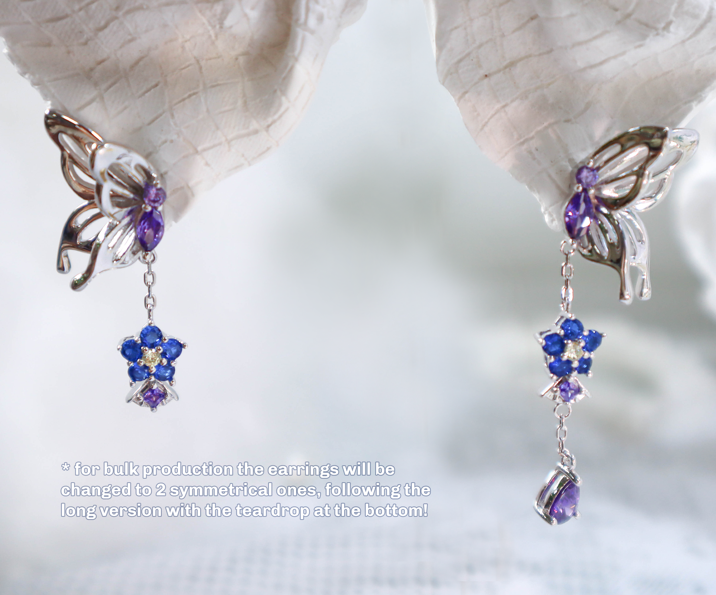 NOTE: For the earrings sample pictures here they are asymmetrical but for the actual products sent they will be 2 long symmetrical ones (with the teardrop at the bottom)!!