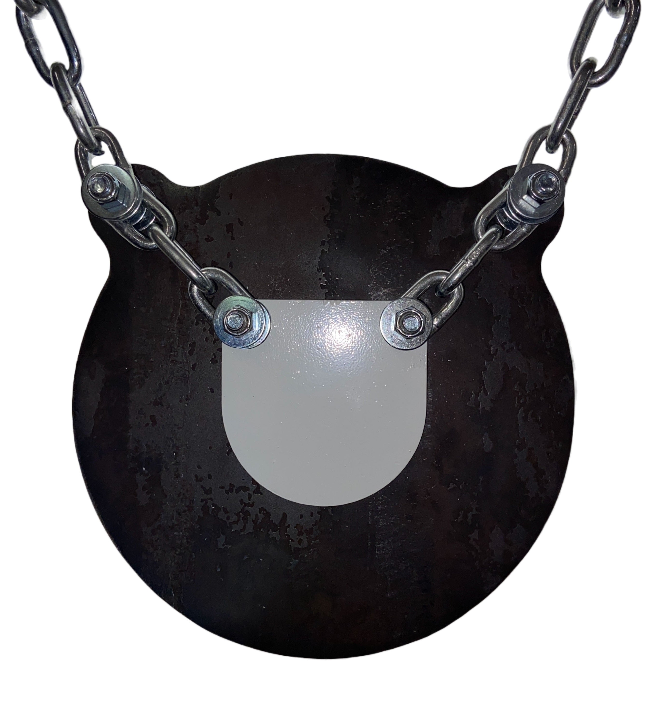 - Set includes (1) 10" x 3/8" AR500 Gong, (1) 4" x 3/8" Center AR500 Gong Bullseye, chains, bolts, washers and nuts. Kit comes assembled as pictured.