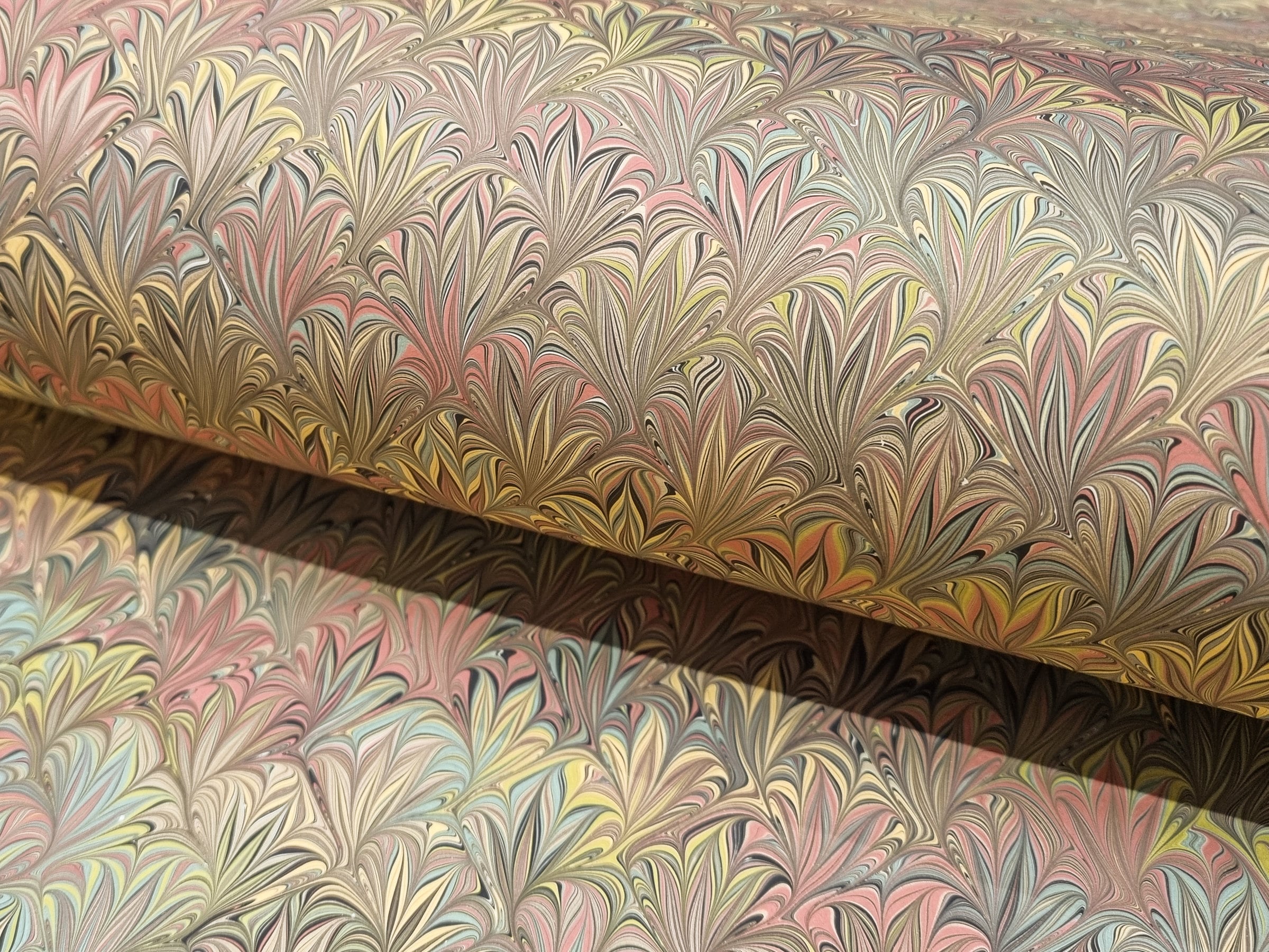 Hand-marbled paper, horta on buttermilk paper made by Papiers Prina (Belgium).