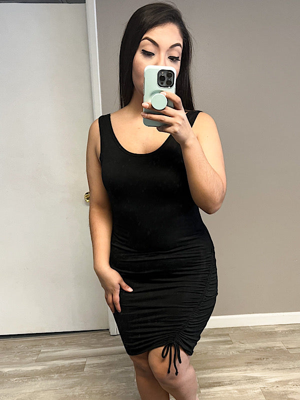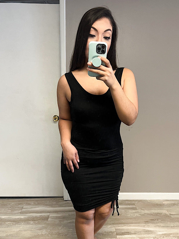 *New* Black side ruched dress