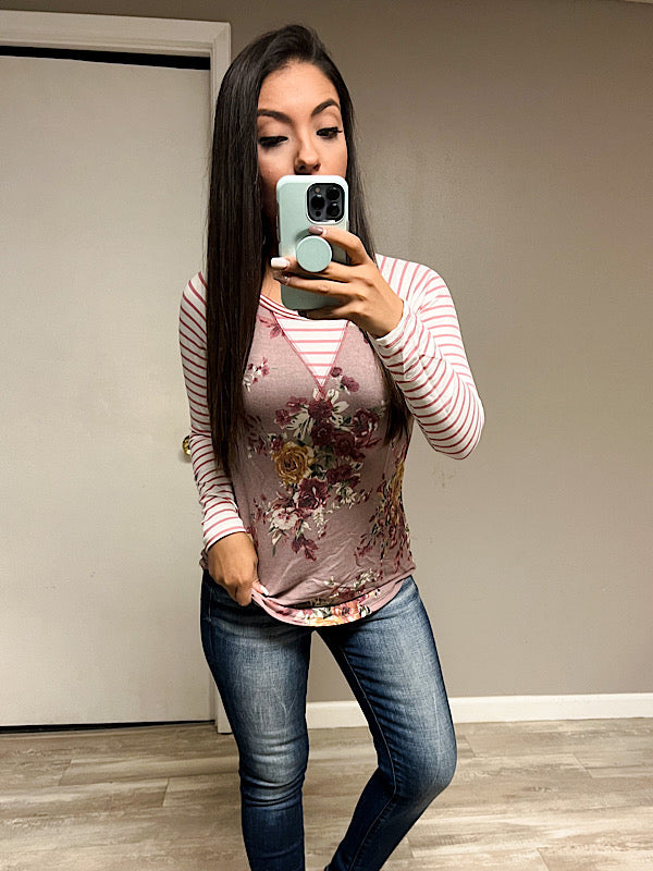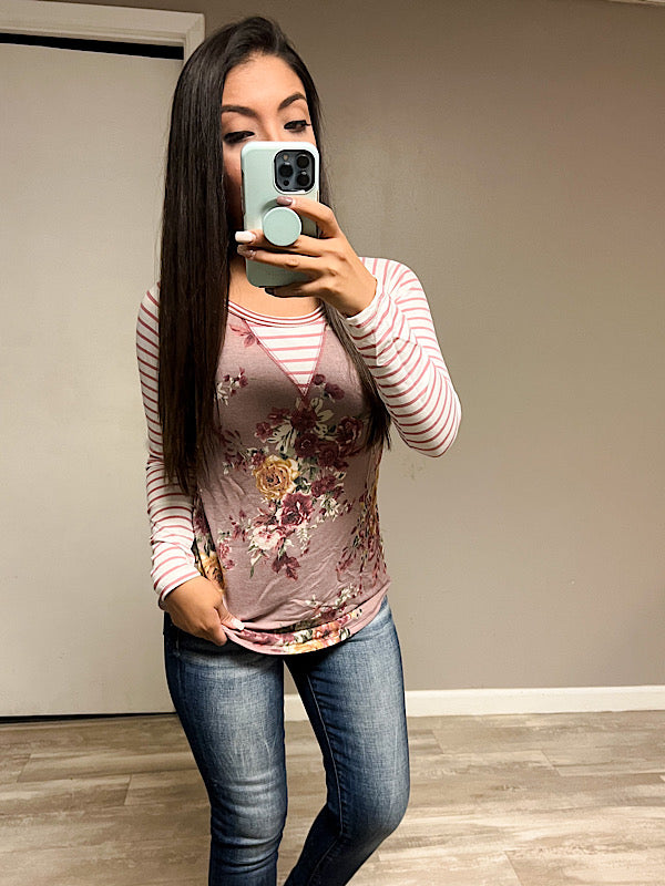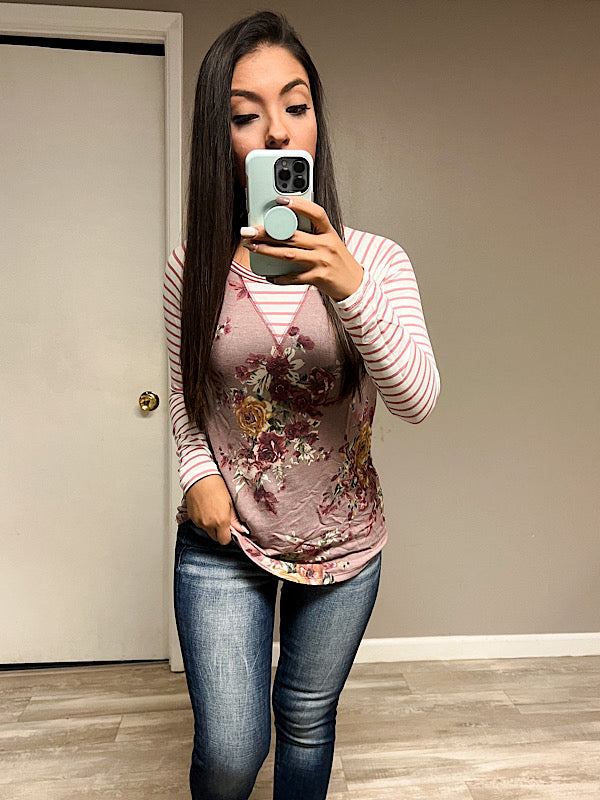 *New* Floral Stripe Stitch top