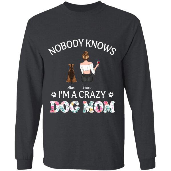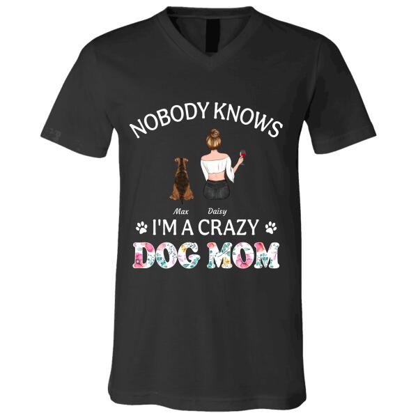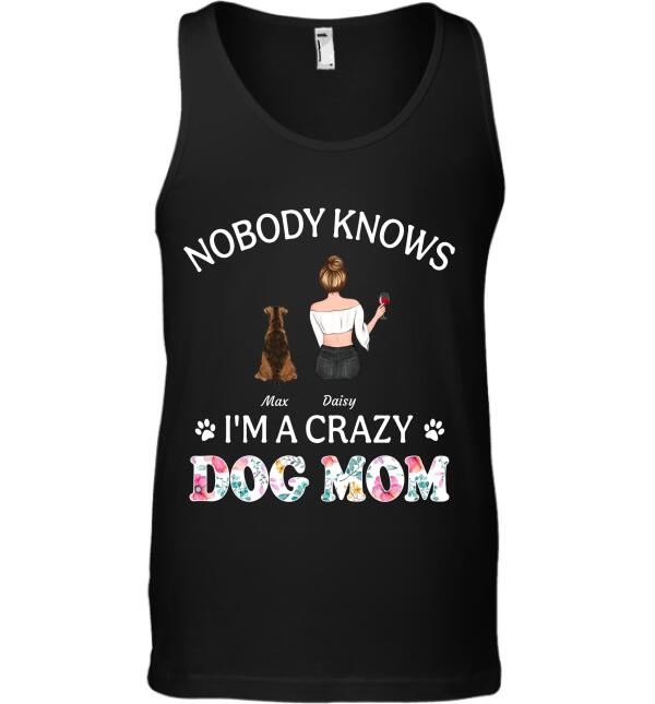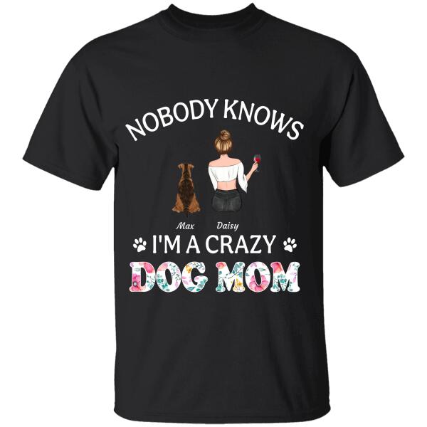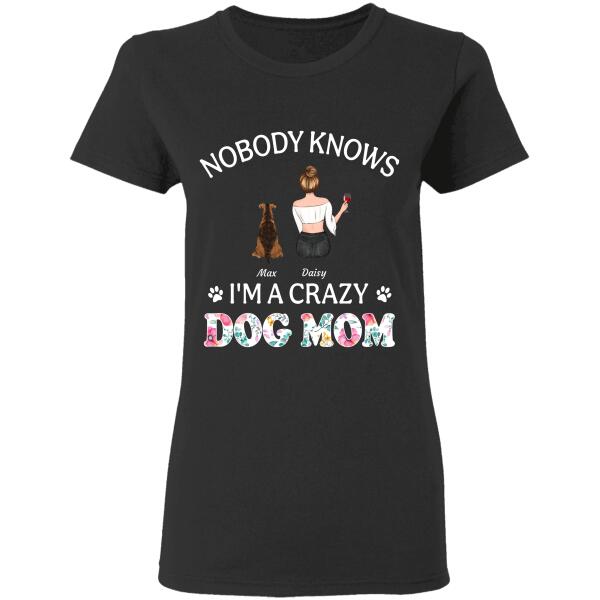 " Nobody knows i'm a crazy Dog Mom"GIrl, dog & cat personalized T-shirt TSTU129