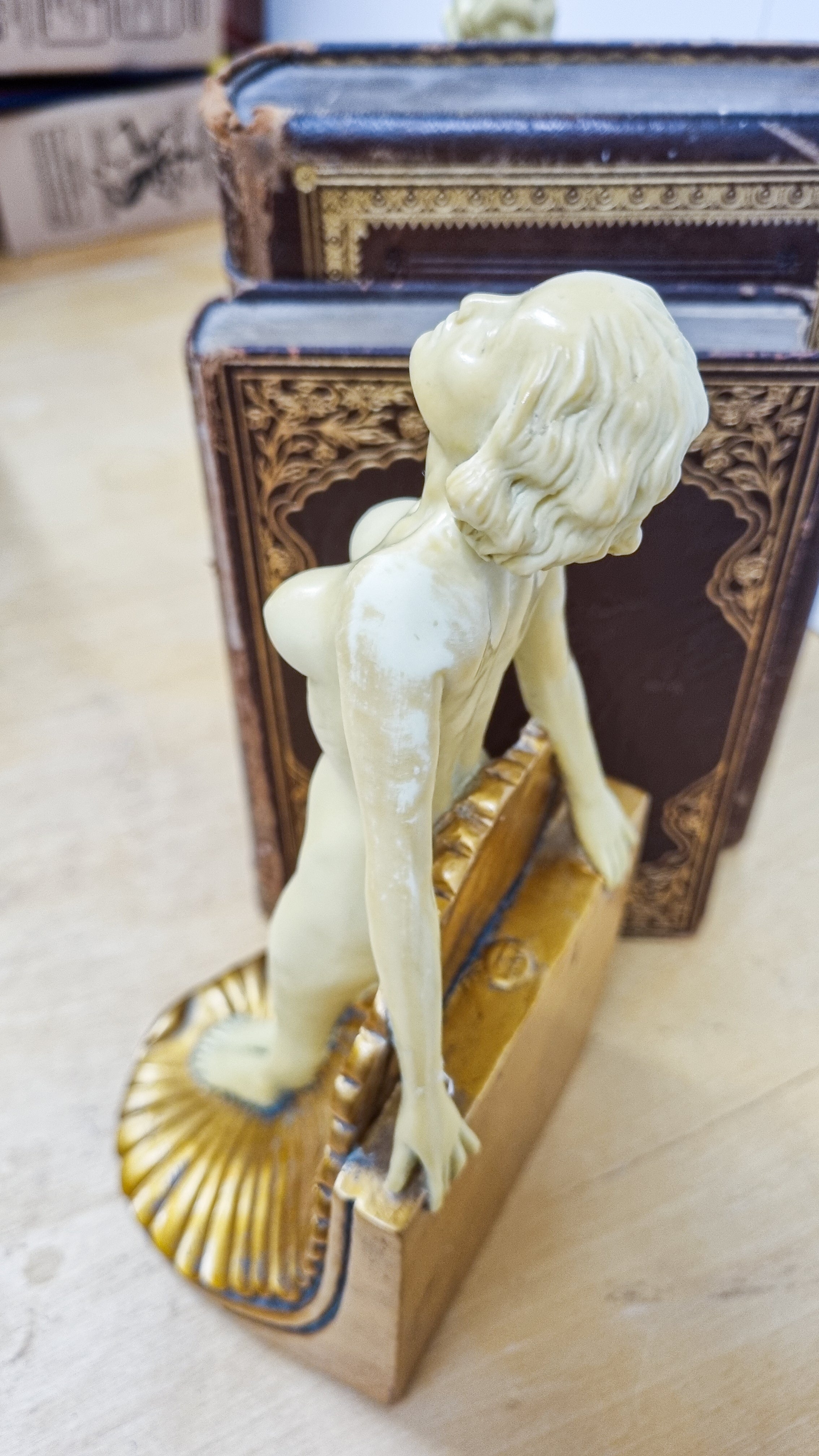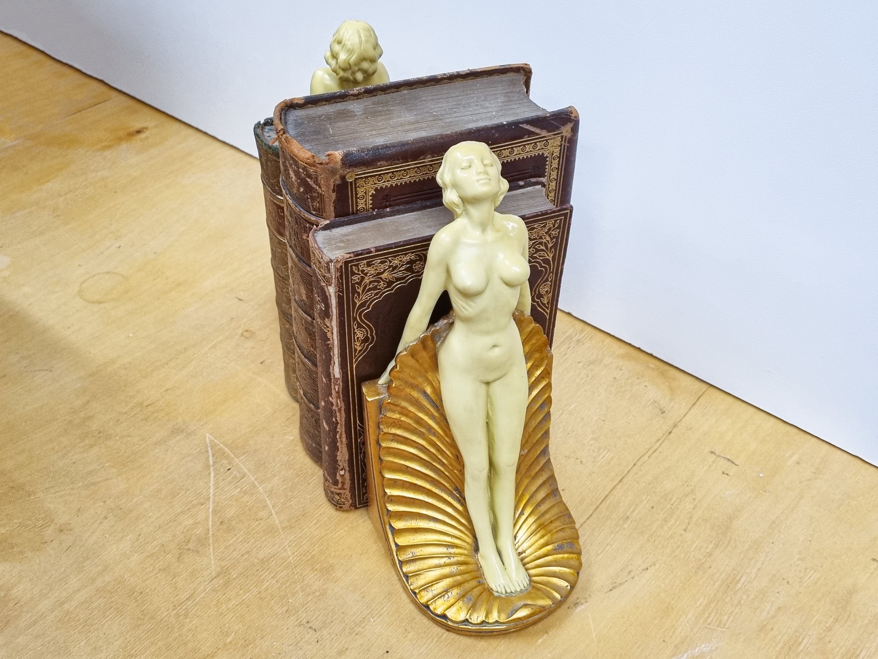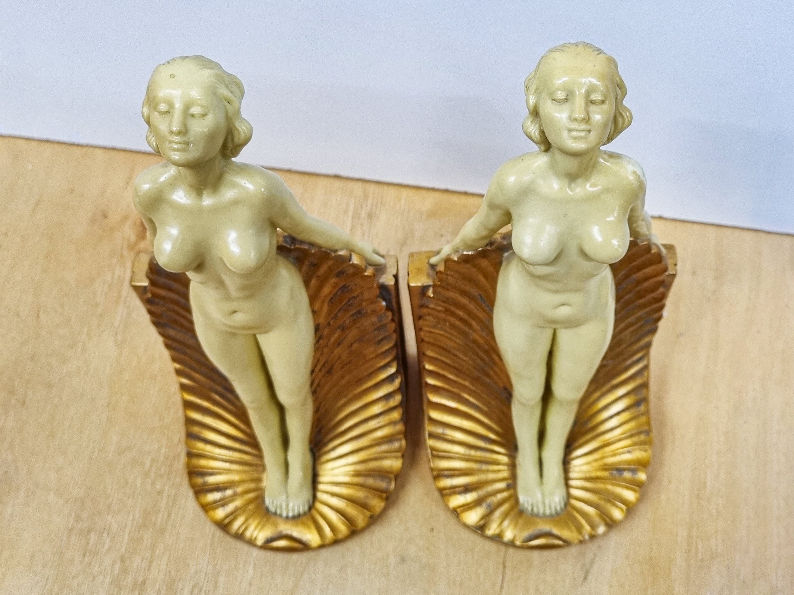 Pair of Art Deco Style Bookends in the Form of Two Nudes Standing on Shells (24cm high, Cast Resin)