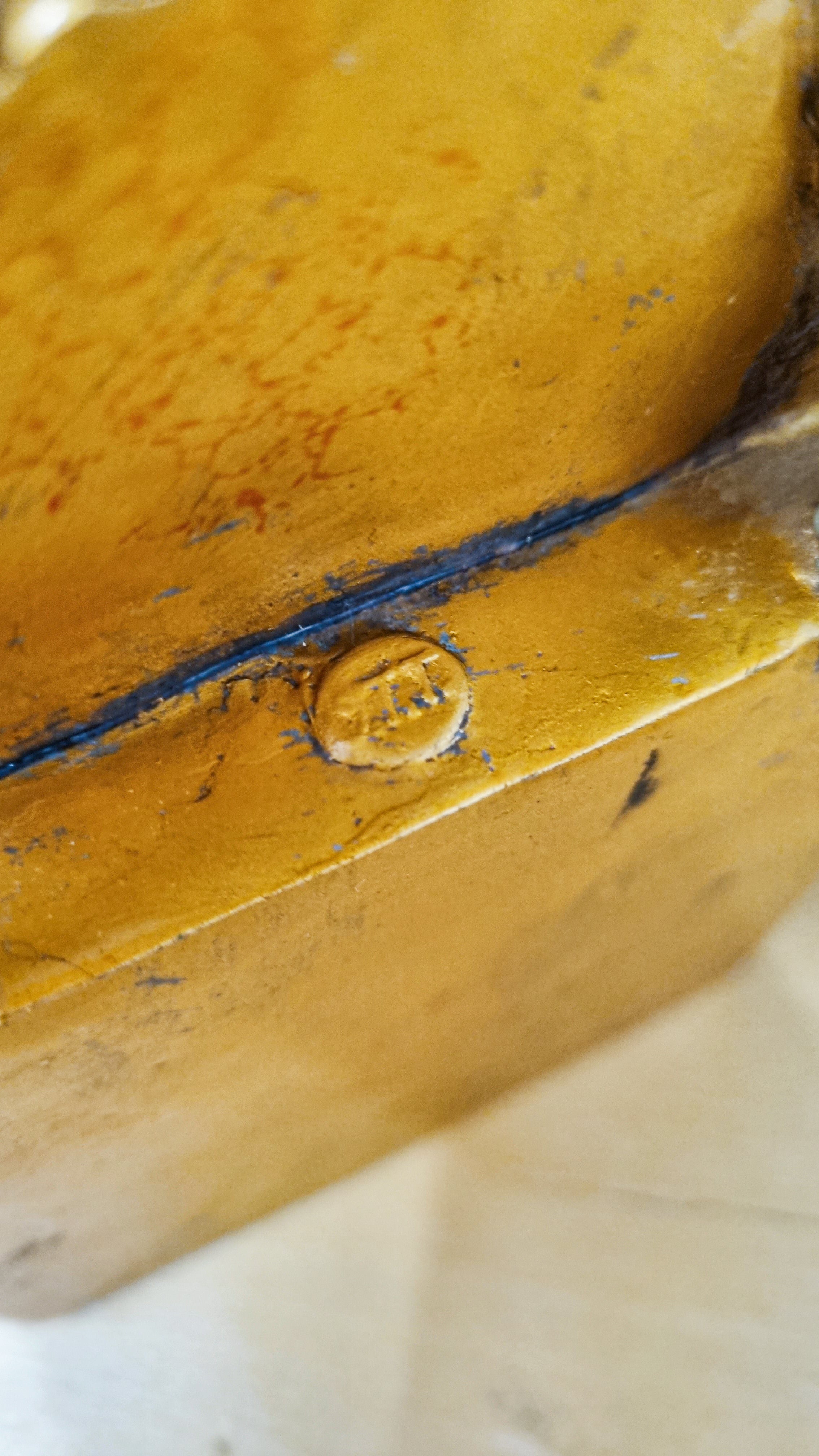One of the figures has some discoloration on the left shoulder. It isn't visible from the front, and when the figure stands with its left shoulder to the wall. Other than that, no cracks or chips, just some age-related patina which adds to the charm and character. The discoloration can probably be mitigated with a bit more extensive cleaning of the surface.