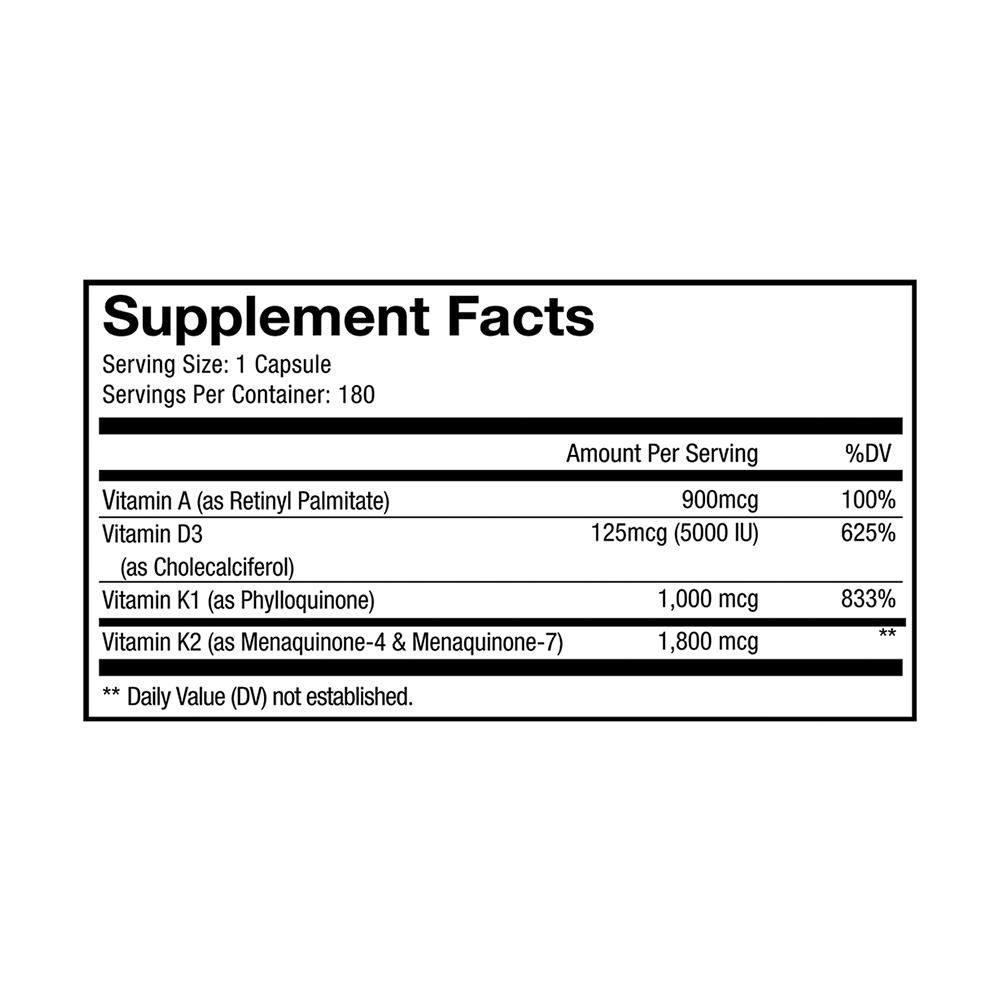A-D-K Vitamins | Vitamin D3 and K2 plus A - 180 veggie caps